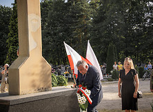 Kolejnym punktem było złożenie kwiatów i zapalenie symbolicznych zniczy przed tablicą upamiętniającą wydarzenia sprzed 80 lat. Kwiaty złożyły następujące delegacje: