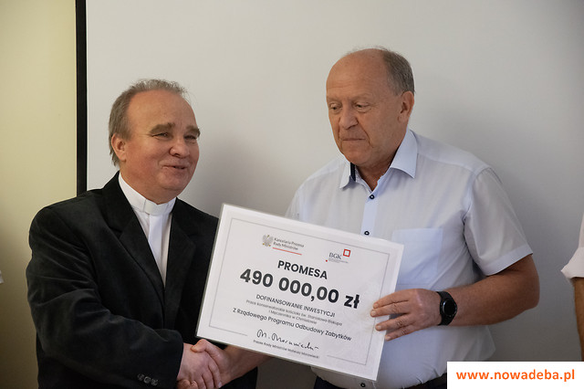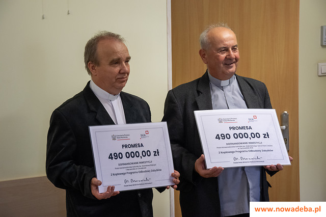 W poniedziałek, 17 lipca, w Urzędzie Miasta i Gminy Nowa Dęba odbyła się konferencja prasowa, podczas której wręczone zostały promesy dla księdza proboszcza Józefa Rogowskiego z parafii pw. św. Stanisława Biskupa i Męczennika z Chmielowa oraz dla księdza proboszcza Piotra Palacza z parafii pw. Najświętszego Serca Pana Jezusa z Tarnowskiej Woli. Otrzymane środki w wysokości łącznej niemal miliona złotych pochodzą z Rządowego Programu Odbudowy Zabytków i zostaną przeznaczone na istotne prace konserwatorskie w blisko stuletnich świątyniach znajdujących się w tych dwóch miejscowościach.