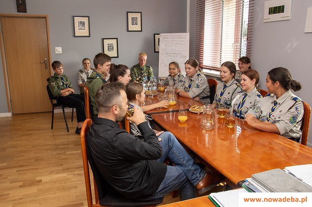 W środę, 19 lipca, mieliśmy przyjemność gościć w Urzędzie Miasta i Gminy Nowa Dęba harcerzy z 2 Szczepu Harcerskiego "Szkwał" z Tarnowskiej Woli, wraz z ich kadrą wychowawczą: dotychczasowym komendantem, ks. phm. Kamilem Dziurdziem - byłym wikariuszem z parafii w Tarnowskiej Woli, pwd. Ewą Rawską oraz pwd. Stanisławem Rawskim. Spotkali się oni z burmistrzem Wiesławem Ordonem, który serdecznie powitał naszych gości.