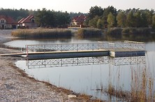 Trwają prace w ramach rewitalizacji nowodębskiego zalewu. Wykonawca „zacumował” właśnie nowe, pływające molo w miejscu starego.