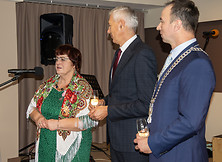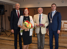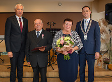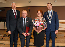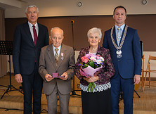 Życzenia przekazał również burmistrz Wiesław Ordon - Szanowni Jubilaci, świętujecie dziś swój piękny Jubileusz 50-lecia pożycia małżeńskiego. Wraz z Wami świętuje to wydarzenie cała gmina. Chcemy w ten sposób docenić znaczenie małżeństwa, ważność tej instytucji dla całej społeczności lokalnej, bo przecież Wy, poprzez ten związek, przyczyniacie się do jej rozwoju. Pewnie sami rzadko patrzycie na swoje małżeństwo jako właśnie ten aspekt społeczny, bo skupiacie się na swojej rodzinie, najbliższych, dzieciach, wnukach, i patrzycie na nich poprzez pryzmat pożycia rodzinnego. My patrzymy na Was również przez pryzmat społecznego aspektu małżeńskiego. To Wy jesteście ostoją naszej społeczności lokalnej, ponieważ tworzycie jej fundament. Państwo w ramach swojego związku małżeńskiego budowaliście swoją rodzinę, ale dzięki temu również budowaliście naszą gminę. Wy siadaliście za biurkiem, Wy szliście do pracy przy maszynie, czy też na roli. Budując pomyślność swojego małżeństwa, budowaliście także pomyślność naszej gminy. Jesteście z pokolenia, które wchodziło w związek małżeński w czasach trudnych. Wymagało to wielu wyrzeczeń i zaangażowania, żeby swoim najbliższym poprawić byt, by zostawić dla nich trwały ślad w domu i w rodzinie. Stworzone przez Was trwałe podwaliny staramy się dzisiaj pomnażać i rozwijać. Pięćdziesiąt lat małżeństwa to czas wielu radości i chwil, które budzą refleksje. Dzisiaj dziękujemy za Waszą wspólną drogę, za każdą chwilę, którą poświęciliście swoim najbliższym i swojemu otoczeniu. Życzymy Państwu, aby kolejne dni Waszego wspólnego kroczenia przez życie upływały w otoczeniu najbliższych, którzy otaczać Was będą miłością, sympatią. Niech kolejne dni przynoszą Wam dużo radości, poczucia tego, że spędziliście piękny czas, ale jeszcze wiele pięknych chwil na wspólnej drodze przed Wami.