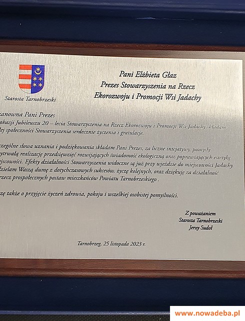 Posłowi na Sejm RP – Panu Zbigniewowi Chmielowcowi, Staroście Powiatu Tarnobrzeskiego Panu Jerzemu Sudołowi, Burmistrzowi Miasta i Gminy Nowa Dęba Panu Wiesławowi Ordonowi, Prezesowi Zarządu Fundacji Fundusz Lokalny Stanisławowi Basce, Inspektorowi ds. rozwoju lokalnego i współpracy z NGO – Pani Maryli Siudem, Dyrektorom Samorządowego Ośrodka Kultury – Panu Krystianowi Rzemieniowi i Pani Iwonie Strojek, Dyrektorowi Samorządowego Ośrodka Sportu i Rekreacji w Nowej Dębie – Panu Adamowi Szurgocińskiemu, wieloletniemu przewodniczącemu Rady Miejskiej w Nowej Dębie Panu Wojciechowi Serafinowi, byłemu radnemu Panu Andrzejowi Durtce, radnemu Panu Marianowi Tomczyk, Dyrektorkom Szkoły Podstawowej w Jadachach Pani Bernardzie Głowackiej i Pani Katarzynie Haraf – Żmudzie, sołtysowi wsi Jadachy – Józefowi Grdeniowi wraz z Radami Sołeckimi, Księdzu proboszczowi Janowi Niemcowi, organizacjom działającym w Jadachach: Ochotniczej Straży Pożarnej, Stowarzyszeniu Anielskie Grajki, Kołu Gospodyń Wiejskich, Ludowemu Zespołowi Sportowemu, Rycerzom Kolumba, sponsorom, darczyńcom, wolontariuszom, byłym i obecnym członkom stowarzyszenia.