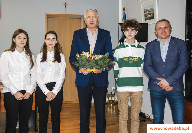 Dzisiaj, 19 grudnia, mieliśmy przyjemność gościć w Urzędzie Miasta i Gminy Nowa Dęba młodzież ze Szkoły Podstawowej im. Fabiana Dury w Chmielowie. Na ręce burmistrza Wiesława Ordona, uczniowie wraz z dyrektorem szkoły Mariuszem Koprem, przekazali uroczy stroik świąteczny, będący wyrazem ich życzliwości na nadchodzące Święta Bożego Narodzenia. Prezentacja stroika została uwieńczona serdecznymi życzeniami świątecznymi.