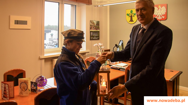 Betlejemskie Światło Pokoju, niesione pod hasłem "Czyńmy pokój", również w tym roku znalazło swoje symboliczne miejsce w naszym Urzędzie. 21 grudnia małe światełko zostało przekazane w ręce burmistrza Wiesława Ordona przez zuchów, harcerzy oraz instruktorów 1 Drużyny Wielopoziomowej "Zakamuflowani", 1 Gromady Zuchowej "Zuszki Duszki" oraz 2 Szczepu Harcerskiego "Szkwał" z Tarnowskiej Woli. Burmistrz złożył gościom życzenia świąteczne, a także podziękował za ich zaangażowanie w szeroko pojęte akcje społeczne oraz za niesienie pokoju.
