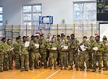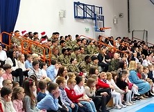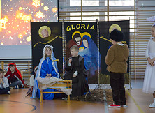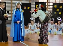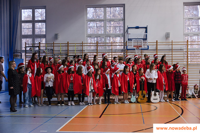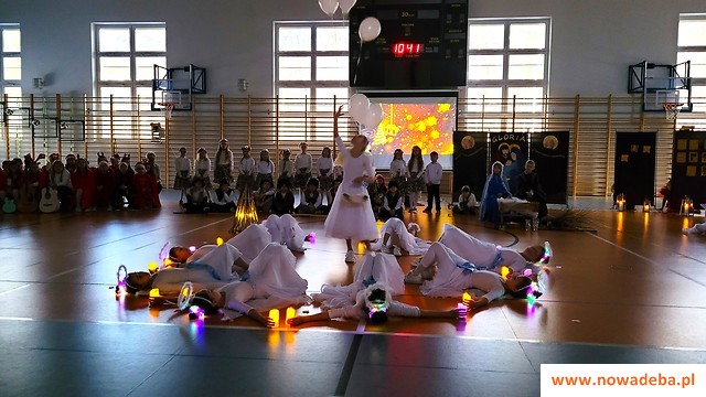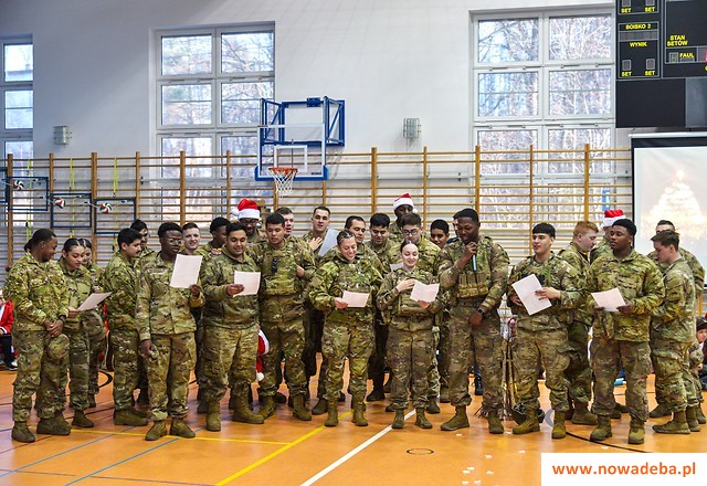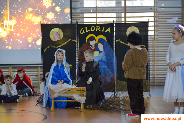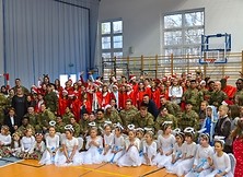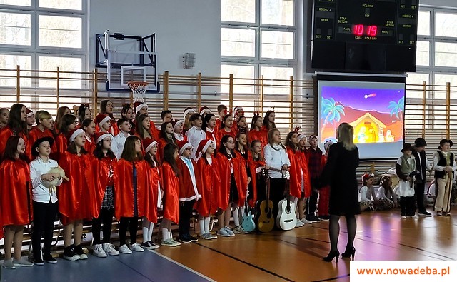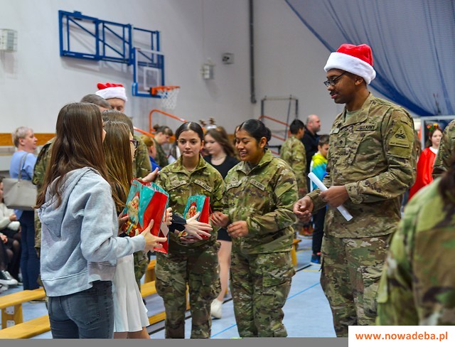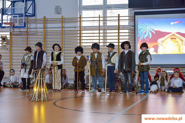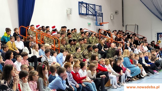 Tradycją Szkoły Podstawowej nr 2 w Nowej Dębie jest coroczne przygotowywanie jasełek. Tym razem w niezwykły czas Świąt Bożego Narodzenia wprowadziło nas przedstawienie, które odbyło się 22 grudnia 2023 r., przygotowane przez uczniów z klasy 2b, 3a i 3b pod opieką pań wychowawczyń: Marty Burek, Renaty Mortki i Ewy Serwinowskiej. Uroczystość uświetnił chór szkolny prowadzony przez panią Anetę Wojdacz. Na scenie podziwialiśmy pastuszków, aniołki, po raz kolejny przeżywaliśmy historię Maryi i Józefa szukających schronienia w Betlejem. Były to jasełka inne od wszystkich, ponieważ gościliśmy w szkole żołnierzy US Army stacjonujących w Nowej Dębie. Chcieliśmy podzielić się z nimi dobrem, miłością i radością Świąt, które spędzali z dala od swoich domów, rodzin i najbliższych. Wesoły, świąteczny nastrój udzielił się wszystkim. Po tym gdy chór szkolny zaśpiewał „We Wish You a Merry Christmas”, żołnierze amerykańscy przyłączyli się do wspólnego śpiewu, a następnie zrobili wszystkim zebranym miłą niespodziankę i zaśpiewali „Jingle Bells”. Jasełka zakończyły życzenia i wspólne zdjęcia. Żołnierze otrzymali od nas świąteczne upominki oraz dokonali pamiątkowego wpisu do Kroniki Szkolnej. Tegoroczne przedstawienie bożonarodzeniowe pozostanie w naszej pamięci na długo. Występ był niezwykłym przeżyciem zarówno dla aktorów, nauczycieli, rodziców, uczniów, jak i zaproszonych amerykańskich żołnierzy.