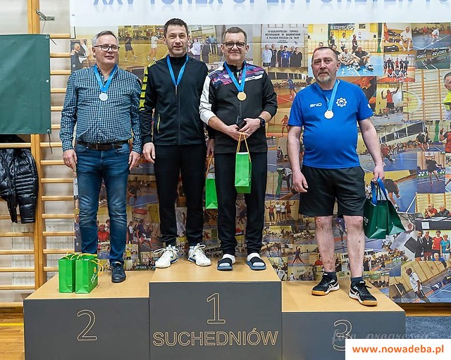 Na zdjęciach badmintonowi weterani z Nowej Dęby na podium dla zwycięzców w Suchedniowie.
