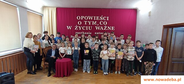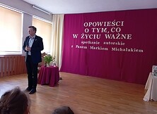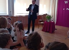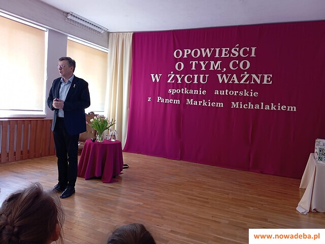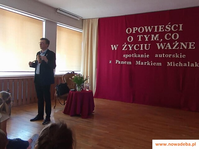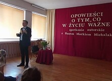 Pojawił się u nas, aby porozmawiać o tym, co w życiu każdego z nas, a szczególne w życiu najmłodszych jest najważniejsze. W swoich książkach „Opowieści o tym, co w życiu ważne”, „Opowieści o tym, co daje moc” oraz „Opowieści o prawach dziecka” zabiera nas w świat wartości. Pan Marek stara się stawiać na drodze czytelnika drogowskazy, nie tylko dla młodszych, ale dla każdego z nas. To właśnie wartości i prawa dziecka były tematem przewodnim spotkania.