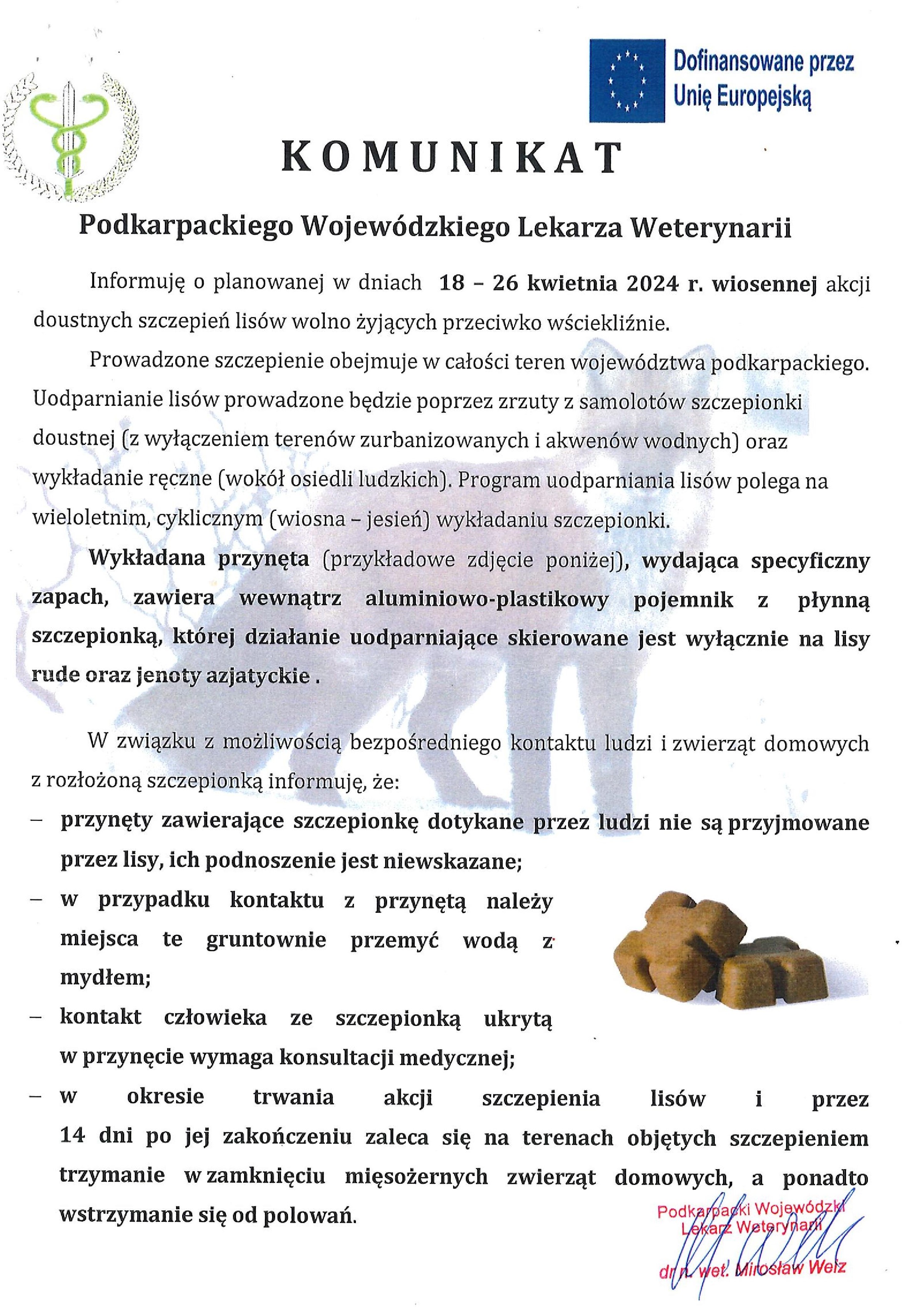 KOMUNIKAT Podkarpackiego Wojewódzkiego Lekarza Weterynarii