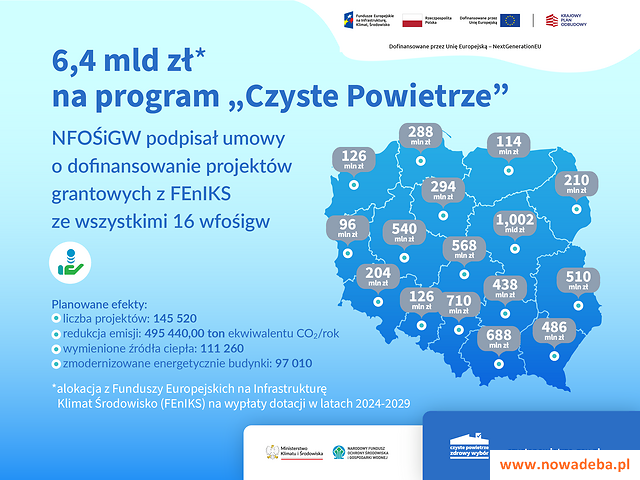 „Mamy kolejne duże pieniądze dla Polaków na wymianę kopciuchów i termomodernizację domów. To aż 6,4 miliarda złotych z Funduszy Europejskich na Infrastrukturę, Klimat, Środowisko (FEnIKS), które obok środków z Krajowego Planu Odbudowy (KPO), zapewniają nam ciągłość i stabilne finansowanie „Czystego Powietrza” w najbliższym czasie. To ogromy sukces, wypracowany wspólnie z Ministerstwem Klimatu i Środowiska” – dodaje prezes NFOŚiGW.