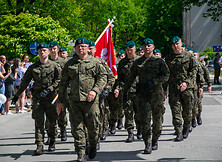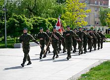 Oficjalną część uroczystości zakończyła defilada wojskowa. Po niej, zgodnie z tradycją, burmistrz rozdał mieszkańcom flagi, a dzieci, które tego dnia świętowały razem z nami na Placu mjr. Gryczmana, otrzymały biało-czerwone chorągiewki.