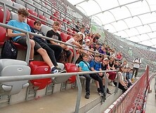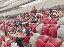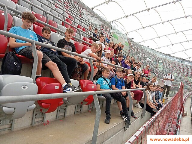 Naszą wizytę w stolicy rozpoczęliśmy od zwiedzania Stadionu Narodowego, gdzie weszliśmy na trybuny, zwiedzili szatnie piłkarskie, loże VIP, centrum prasowe, kaplicę wielowyznaniową oraz parking podziemny. Dla wielu kibiców sportowych, którzy są w gronie naszych uczniów, była to nie lada gratka.