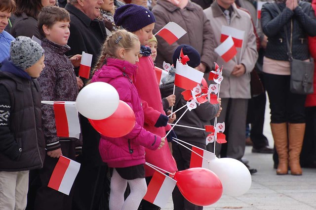 Niespodzianką dla najmłodszych były baloniki, chorągiewki i wiatraczki w barwach narodowych rozdawane na placu.