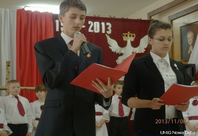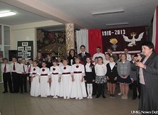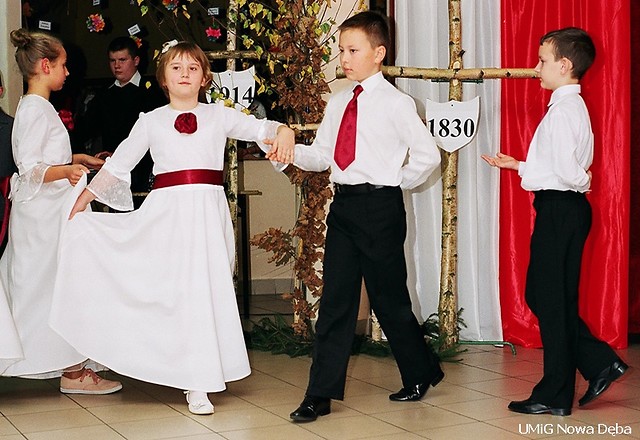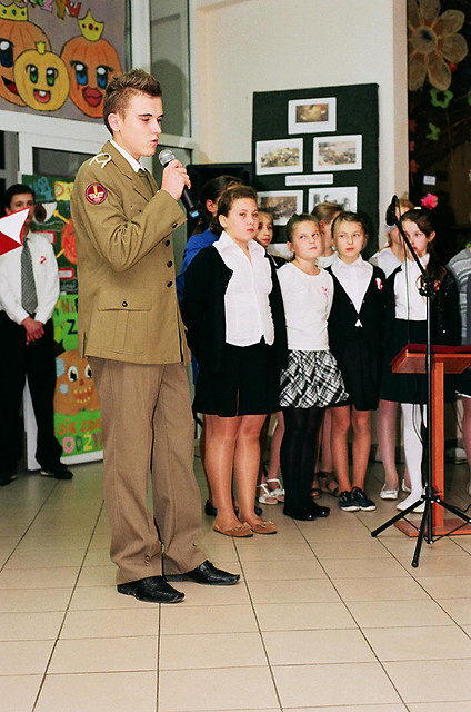Jak co roku uczniowie Zespołu Szkół w Jadachach przygotowali dla społeczności lokalnej Wieczornicę z okazji Święta Niepodległości, która odbyła się 8 listopada. Myślą przewodnią uroczystości były słowa Jana Pawła II " Wolności nie można posiadać, trzeba ją stale zdobywać i rozumieć". Na część artystyczną składały się wiersze, pieśni patriotyczne, a także polonez pięknie wykonany przez uczniów klasy trzeciej. Wszyscy bardzo wzruszyli się oglądając program artystyczny, toteż nie szczędzili braw dla młodych artystów. W części mniej oficjalnej przy ciastku i herbatce, każdy mógł przyłączyć się do śpiewu pieśni patriotycznych .