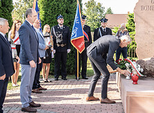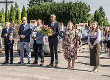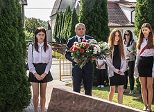 Następnie delegacje złożyły kwiaty pamięci pod pomnikiem. W imieniu władz samorządowych hołd ofiarom oddali burmistrz Wiesław Ordon, zastępca burmistrza Marek Kopeć, radna Powiatu Tarnobrzeskiego Marzena Chmielowiec, radni Rady Miejskiej Stanisław Skimina oraz Damian Wolan, a także zastępca kierownika ds. Filii – Centrum Kultury w Chmielowie Justyna Tłusty. Kwiaty złożyła również delegacja OSP w Chmielowie oraz Szkoły Podstawowej w Chmielowie.