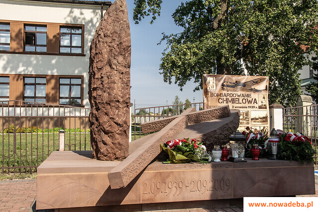 Niemieckie bombowce pojawiły się nad Chmielowem późnym popołudniem 2 września 1939 r. Tragiczne wydarzenia trwały kilkanaście godzin, podczas których bomby zniszczyły cegielnię, młyn i inne budynki wzdłuż torów kolejowych. Cała wieś została niemal zrównana z ziemią – ocalały tylko trzy domy, kościół i plebania.