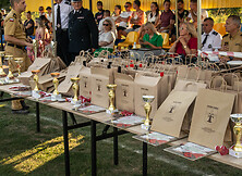 Całość rywalizacji śledziła licznie zgromadzona publiczność, która brawami nagradzała najlepsze drużyny. Zwycięzcy otrzymali dyplomy, puchary oraz nagrody rzeczowe ufundowane przez burmistrza. Miłym akcentem podsumowania zawodów była nagroda rzeczowa ufundowana przez pana posła Zbigniewa Chmielowca dla jednostki OSP Alfredówka oraz puchar od przewodniczącej Rady Miejskiej Beaty Kosior za najszybsze ćwiczenie bojowe zawodów. Dla młodzieżowych drużyn pożarniczych WORD Tarnobrzeg ufundował drobne upominki rzeczowe. Wszystkie zaplanowane konkurencje odbyły się przy bardzo udanej i słonecznej pogodzie i pełnych trybunach.
