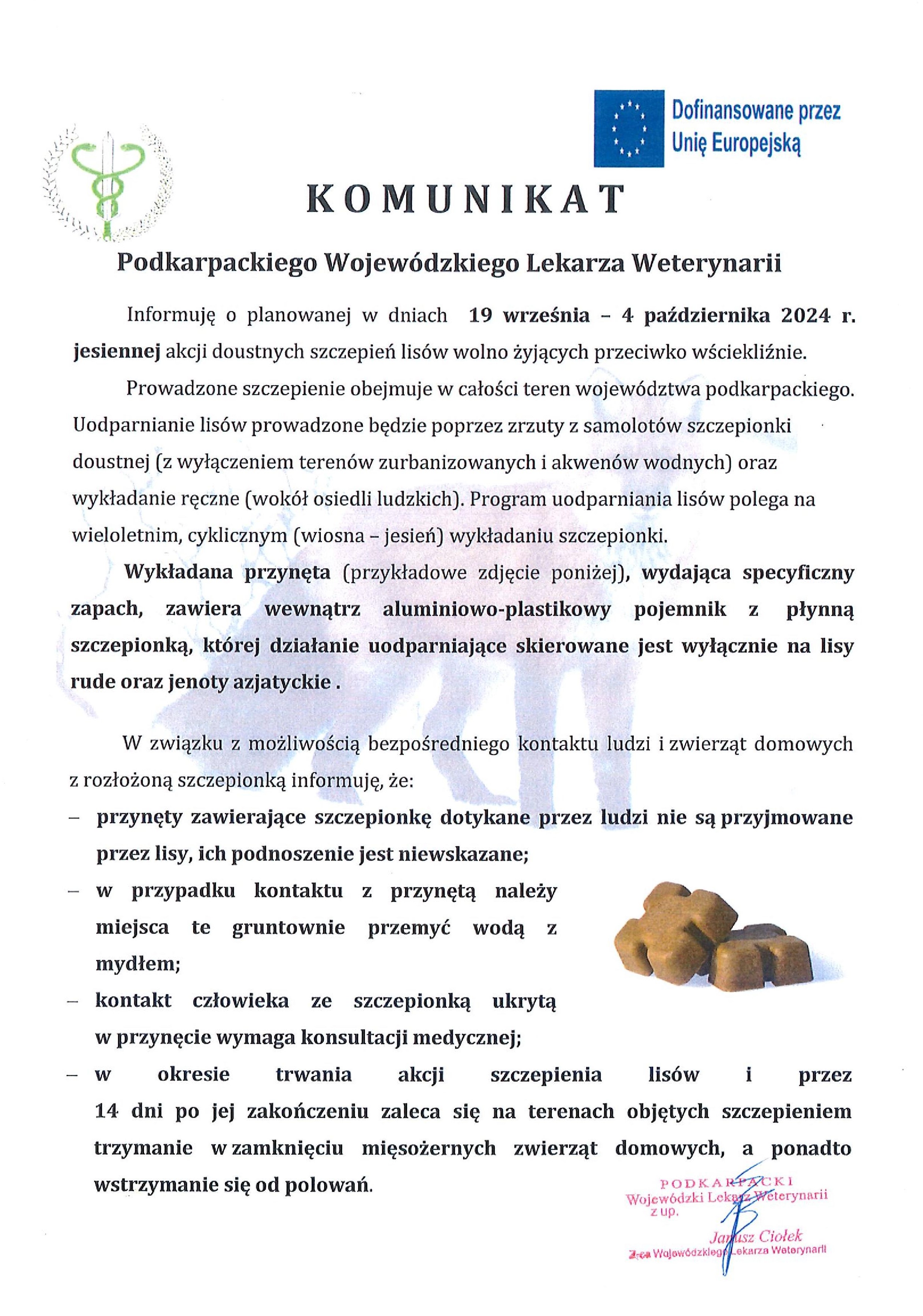 KOMUNIKAT Podkarpackiego Wojewódzkiego Lekarza Weterynarii
