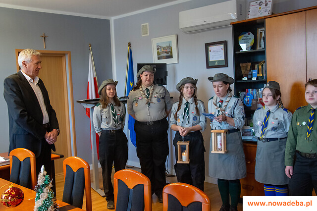 19 grudnia br. w Urzędzie Miasta i Gminy Nowa Dęba odbyło się uroczyste przekazanie Betlejemskiego Światła Pokoju. Druhowie, harcerze oraz instruktorzy 1. Drużyny Wielopoziomowej „Zakamuflowani”, 1. Gromady Zuchowej „Zuszki Duszki” oraz 2. Szczepu Harcerskiego „Szkwał” przekazali symboliczny ogień burmistrzowi Wiesławowi Ordonowi oraz zastępcy burmistrza Markowi Kopciowi, życząc radosnych, spokojnych oraz rodzinnych Świąt Bożego Narodzenia. Samorządowcy również złożyli harcerzom życzenia świąteczne, dziękując przy tym za ich udział i obecność w gminnych wydarzeniach.