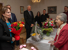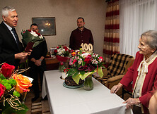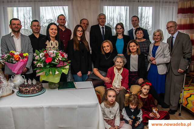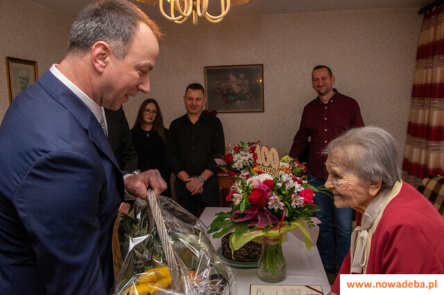 20 grudnia br. setne urodziny obchodziła Pani Genowefa Sroczyńska – mieszkanka Nowej Dęby. Z tej okazji życzenia w imieniu samorządu miasta i gminy Nowa Dęba dostojnej Jubilatce przekazali burmistrz Wiesław Ordon oraz kierownik Urzędu Stanu Cywilnego Ryszard Rzemień, którzy wręczyli również kwiaty, list gratulacyjny oraz kosz owoców. W imieniu Inspektoratu ZUS w Tarnobrzegu życzenia przekazała jego kierownik, Elżbieta Sołtys-Żurek, która wręczyła również list gratulacyjny od prezesa ZUS potwierdzający przyznanie świadczenia honorowego.