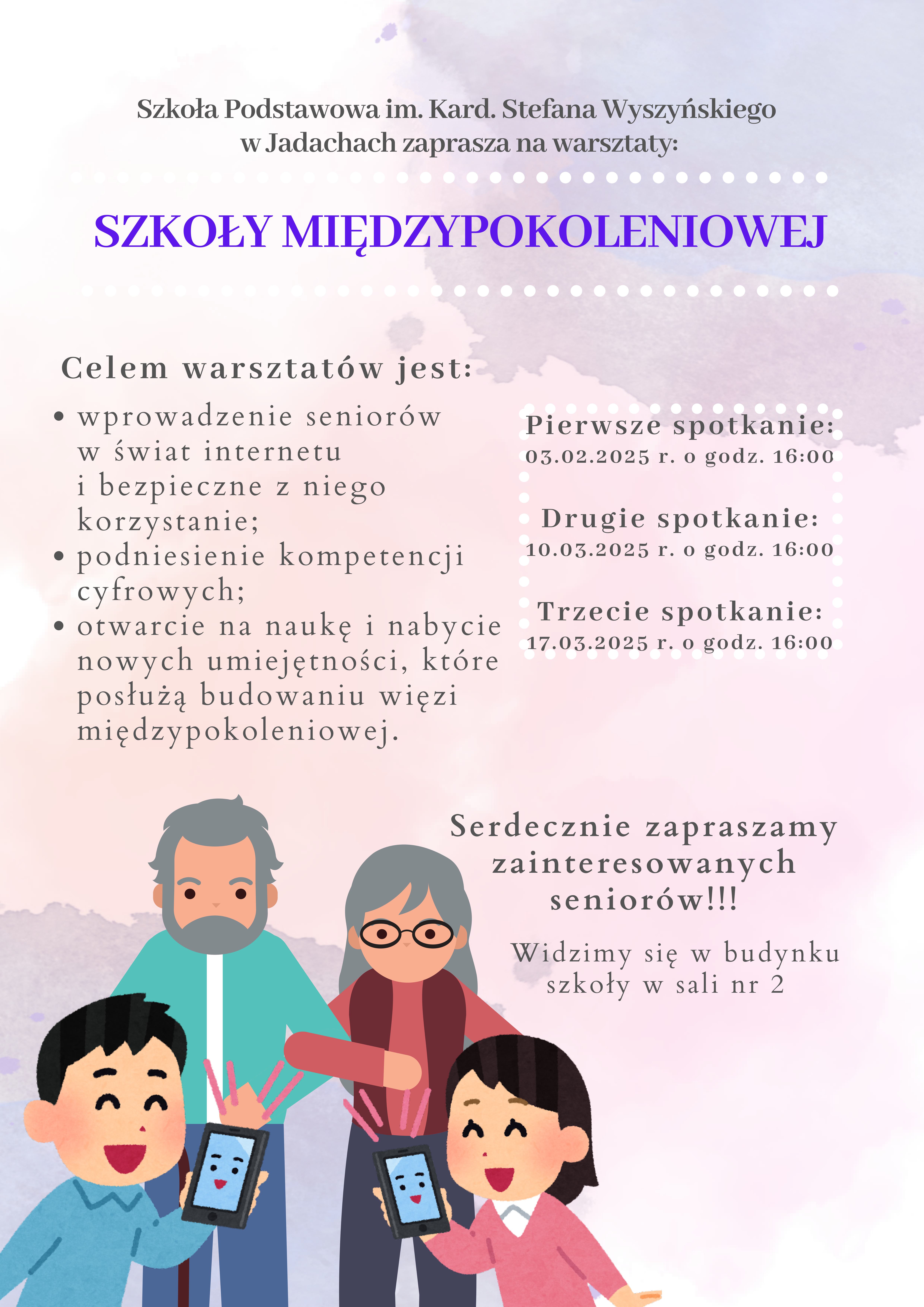 W poniedziałek 3 lutego odbyły się pierwsze warsztaty w ramach projektu „Szkoły międzypokoleniowej”, na które zaprosiliśmy seniorów. Inicjatywa ta realizowana jest pod patronatem Ministerstwa Cyfryzacji, Ministerstwa Edukacji Narodowej, minister ds. polityki senioralnej Marzeny Okły-Drewnowicz i Państwowego Instytutu Badawczego NASK. Ma ona na celu otwarcie szkół na zajęcia z udziałem seniorów oraz stworzenie warunków do integracji międzypokoleniowej.