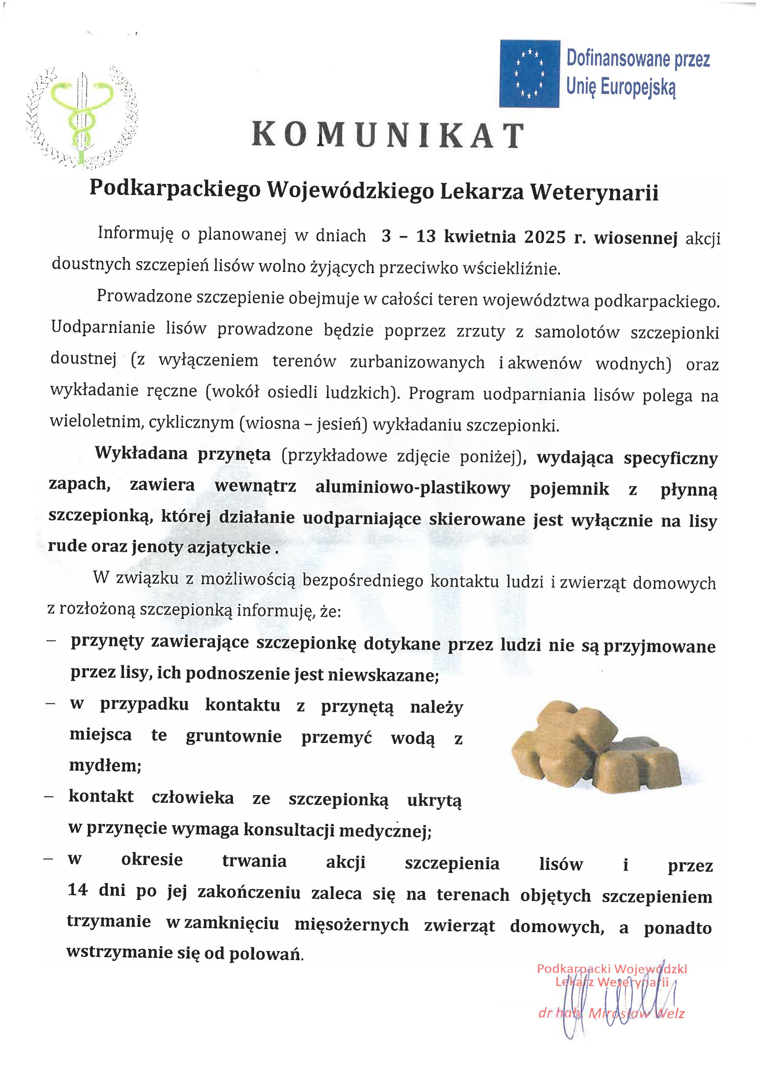 KOMUNIKAT Podkarpackiego Wojewódzkiego Lekarza Weterynarii