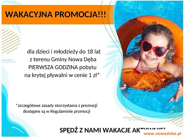 1. Regulamin określa zasady korzystania z Wakacyjnej Promocji na krytej pływalni SOSiR w Nowej Dębie.