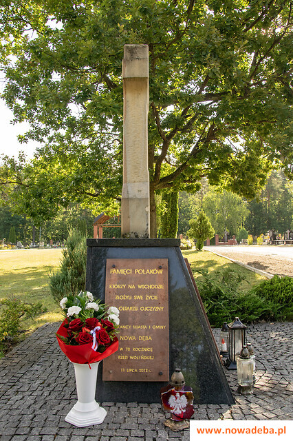 11 lipca, w rocznicę "krwawej niedzieli", która była kulminacją mordów ukraińskich sąsiadów na Polakach w 1943 roku na Wołyniu i Małopolsce Wschodniej, obchodzony jest ustanowiony przez Sejm RP Narodowy Dzień Pamięci o Polakach - Ofiarach Ludobójstwa dokonanego przez OUN i UPA na ziemiach wschodnich II Rzeczypospolitej Polskiej. Dziś, na Cmentarzu Komunalnym w Nowej Dębie, zastępca burmistrza Marek Kopeć, radna Rady Miejskiej Stanisława Żarkowska i sekretarz gminy Elżbieta Gil złożyli wiązankę kwiatów i zapalili symboliczny znicz pamięci przy tablicy upamiętniającej ofiary.