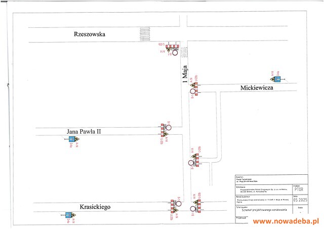 Przedsiębiorstwo Robót Drogowych sp. z o.o. w Mielcu informuje, że od 30 lipca 2025 r. wprowadza tymczasową organizację ruchu w związku z realizacją zadania pn. „Rozbudowa drogi powiatowej nr 1129R – ul. 1 Maja w Nowej Dębie - 3 ETAP”. W związku z układaniem warstw bitumicznych nastąpi całkowite zamknięcie ruchu na odcinku od drogi krajowej nr 9 do ul. Krasickiego. Zmiany w ruchu będą obowiązywać zgodnie z zatwierdzonym projektem nr 1054/2025. Przewidywany termin zakończenia prac to 1 sierpnia 2025 r., w godzinach popołudniowych.