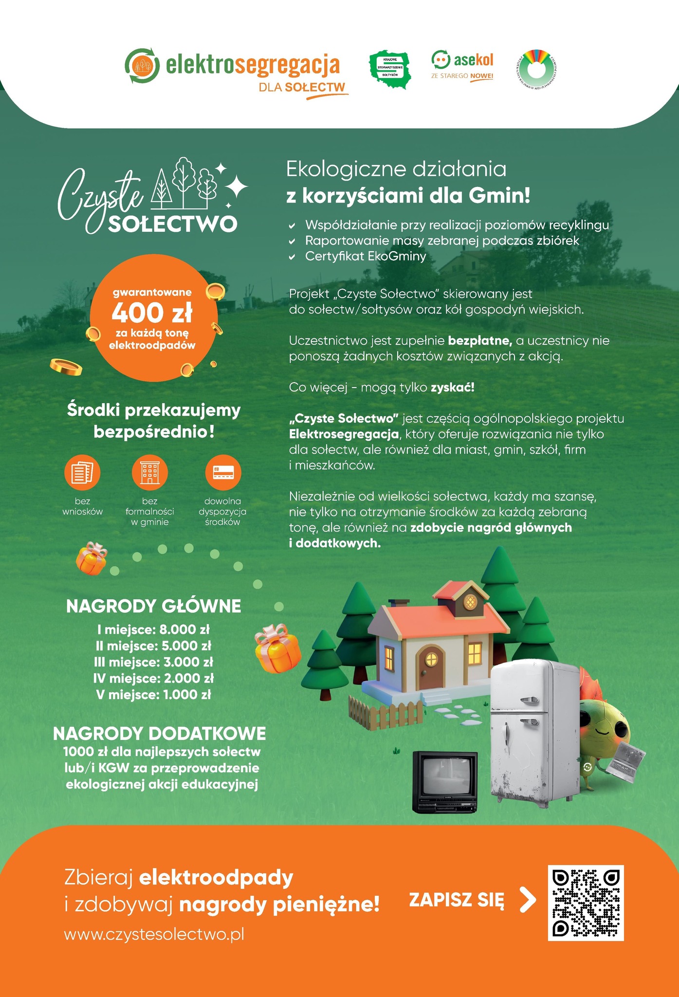 Serdecznie zapraszamy Sołectwa i Koła Gospodyń Wiejskich do udziału w programie „Czyste Sołectwo”!