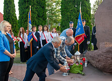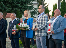 Delegacje złożyły kwiaty pamięci oraz zapaliły znicze pod pomnikiem. W imieniu władz samorządowych hołd ofiarom oddali: przewodnicząca Rady Miejskiej Beata Kosior, zastępca burmistrza Marek Kopeć, radna Powiatu Tarnobrzeskiego Marzena Chmielowiec, radni Rady Miejskiej Stanisław Skimina, Marian Tomczyk oraz Damian Wolan – radny i jednocześnie sołtys sołectwa Chmielów, a także Justyna Tłusty, zastępca kierownika ds. Filii – Centrum Kultury w Chmielowie. Kwiaty złożyła również delegacja Szkoły Podstawowej w Chmielowie z dyrektorem Mariuszem Koprem oraz druhowie OSP Chmielów z prezesem Leszkiem Januszem.