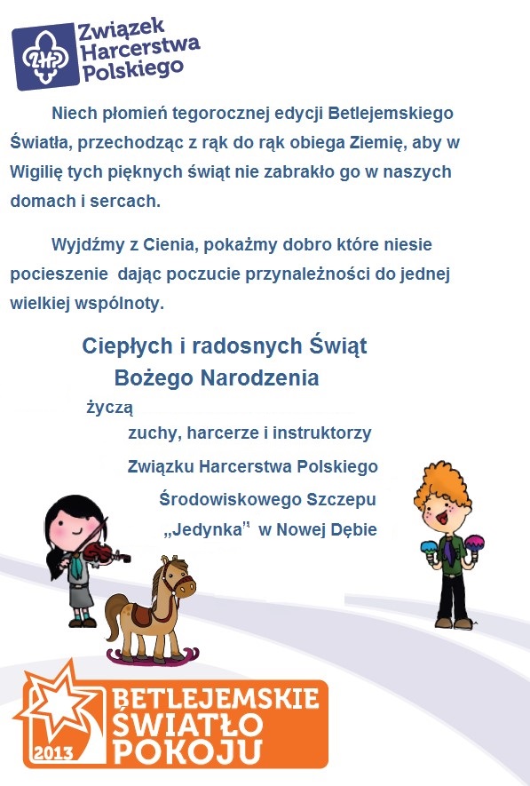W okresie Świąt Bożego Narodzenia pragniemy podzielić się tym szczególnym darem, dać namacalny dowód pojednania, współpracy, braterstwa, poświęcenia, wiary i nadziei. Choć na co dzień staramy się czynić świat nieco lepszym, to poprzez Betlejemskie Światło Pokoju chcemy by tego zadania podjął się każdy człowiek!