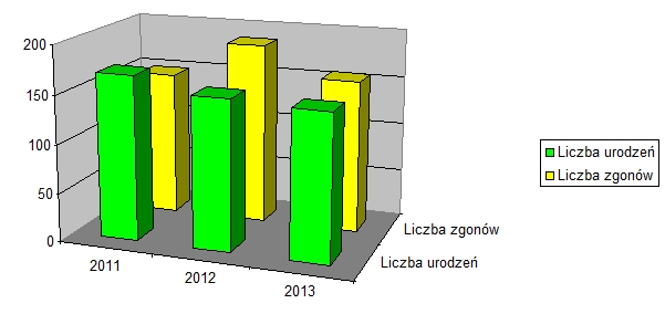 Rok 2013 na Podkarpaciu był pierwszym rokiem, w którym liczba zgonów przewyższyła liczbę urodzeń. Niestety w naszej gminie takie zjawisko wystąpiło rok wcześniej. W 2012r. zmarło 187 osób, czyli o 35 osób więcej niż się narodziło. Wprawdzie w ubiegłym roku zjawisko miało mniejszą skalę, ale jednak się powtórzyło. W 2013 zanotowaliśmy o 7 zgonów więcej niż urodzin. Analizując dane osobowe można zaobserwować więcej urodzeń i zgonów na terenie miasta niż na terenie sołectw.