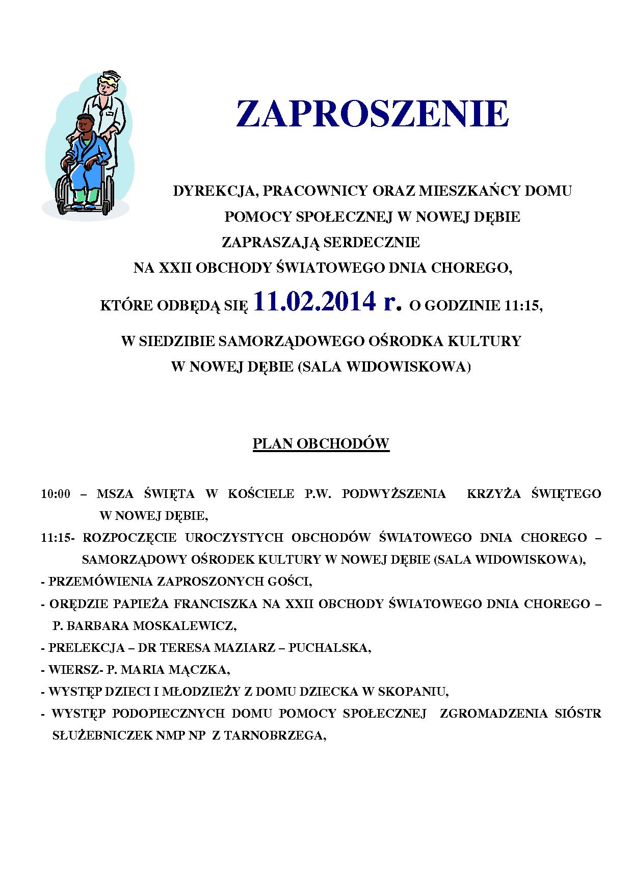 Zaproszenie na XXII Obchody Światowego Dnia Chorego