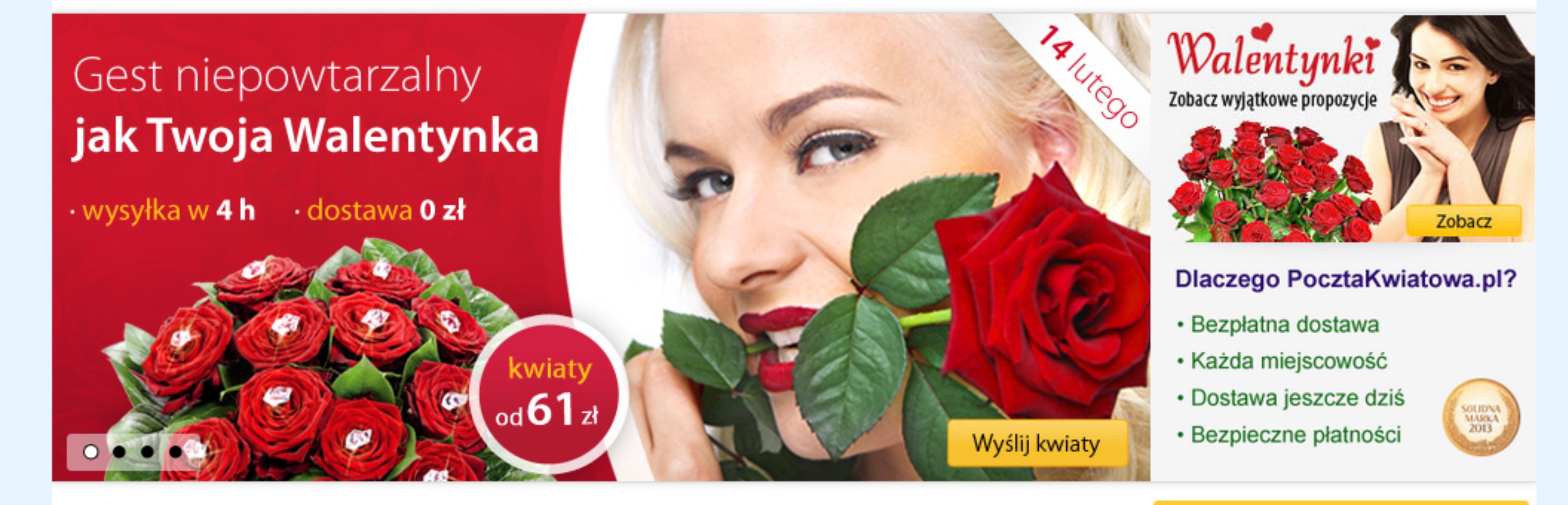 - Poczta Kwiatowa jest firmą sprawdzoną, bezpieczną, wywiązującą się ze zleceń. Dostarczane kwiaty są świeże i dobrej jakości. Centrala regularnie kontroluje jakość realizowanych zleceń i zadowolenie klientów. Zbliżają się Walentynki, a nic tak subtelnie nie wyraża uczuć, jak właśnie bukiet kwiatów.