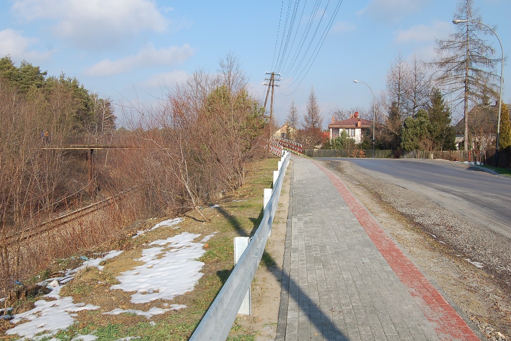Ulica Sikorskiego, w tle po lewej stronie kładka nad torami