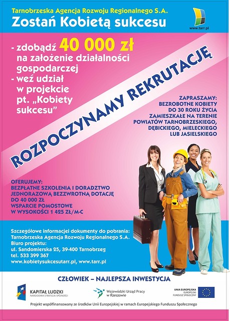 Mieszkanki Gminy Nowa Dęba mogą pozyskać 40 000 złotych w postaci bezzwrotnej dotacji na rozpoczęcie działalności gospodarczej w ramach projektu „Kobiety sukcesu” realizowanego przez Tarnobrzeską Agencję Rozwoju Regionalnego S.A.