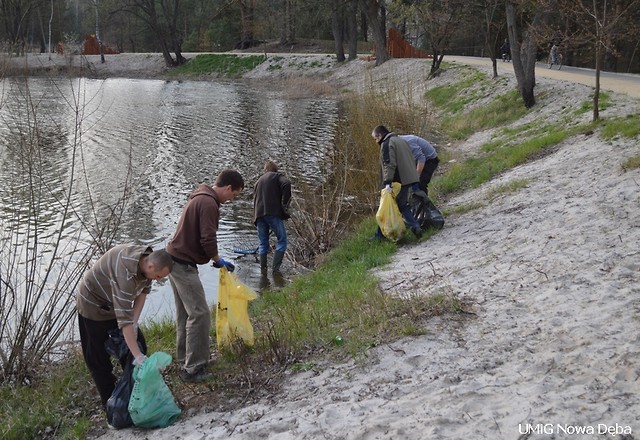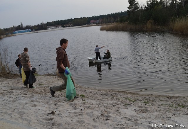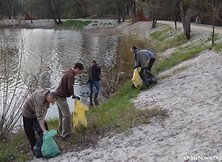 Zgodnie z wcześniejszą zapowiedzią, tak z brzegu jak i z wody, grupa wędkarzy - członków naszego Koła, jak i mieszkańcy miasta, przeprowadziła sprzątanie brzegów nowodębskiego Zalewu.