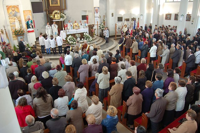 Na zakończenie Mszy uczestnicy uroczystości okrążyli świątynię w procesji eucharystycznej.