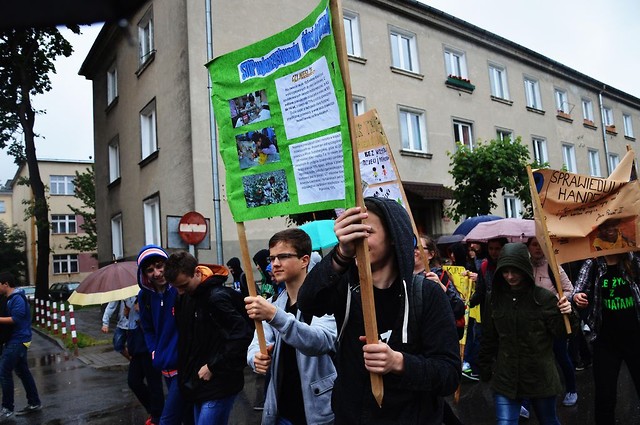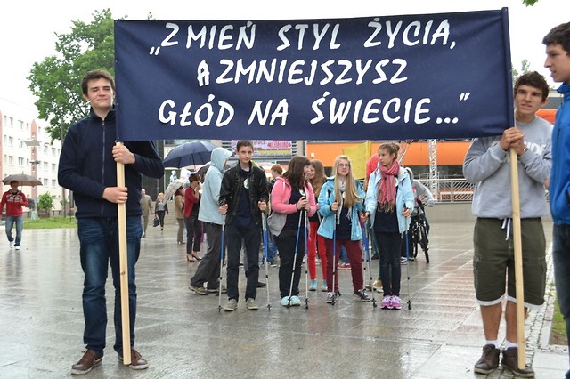 Po spotkaniu, na którym zostały także rozdane nagrody i dyplomy dla uczniów biorących udział w konkursach z edukacji globalnej nastąpił przemarsz całej szkoły ulicami miasta pod hasłem: Zmień styl życia a zmniejszysz głód na świecie poprzedzony zaproszeniem do udziału w nim nowodębian oraz odezwą Mileny Markiewicz, uczennicy kl.IIb do wszystkich mieszkańców Miasta i Gminy Nowej Dęby.