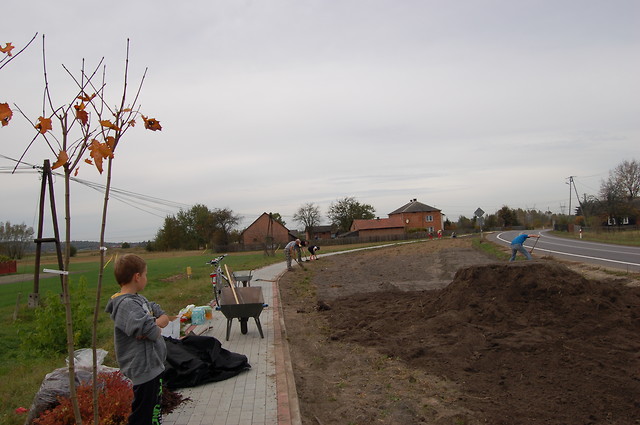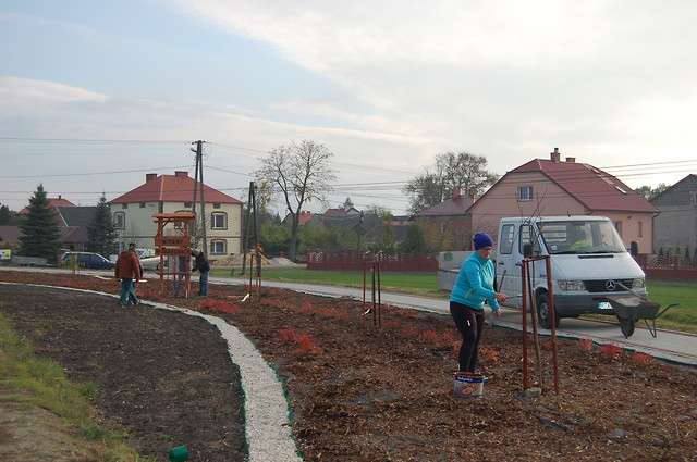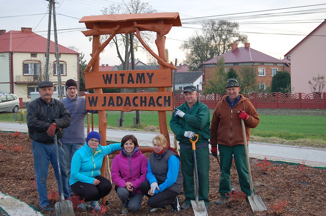 Kolejnym krokiem było wykonanie ozdobnego skweru zieleni tzw. "łezki" między drogą powiatową a chodnikiem przy wjeździe do Jadachów od strony Tarnobrzega. Przy dużym zaangażowaniu mieszkańców w ciągu kilku październikowych dni powstało ładne miejsce z oryginalnym witaczem, które na pewno będzie swoistą wizytówką miejscowości. Ostatni etap projektu to trwający konkurs dla młodzieży gimnazjalnej na wyszukanie "brzydkich" miejsc w Jadachach i wykonanie projektu na ich zagospodarowanie. Projekt kończymy w listopadzie, ale juz na wiosnę planujemy dalsze prace przy poprawianiu estetyki naszej miejscowości.