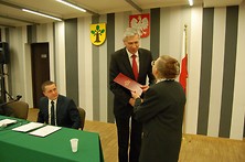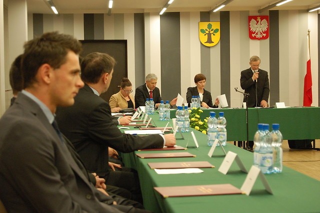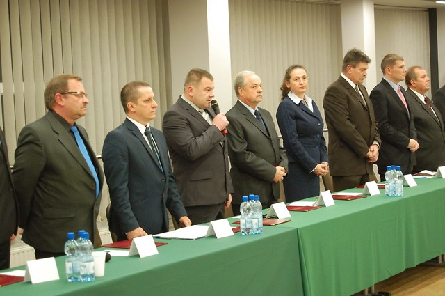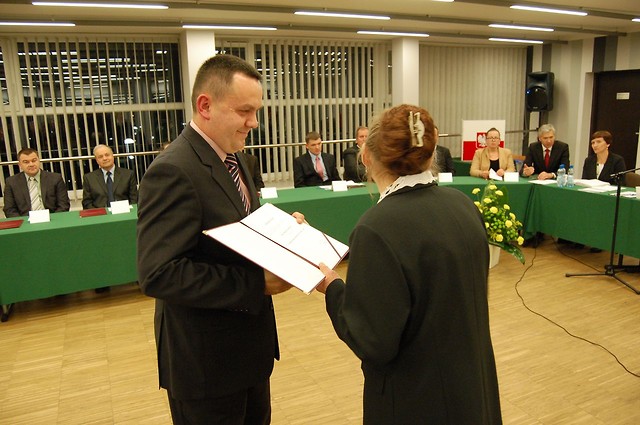 Pierwsza sesja nowej Rady Miejskiej miała uroczysty charakter. Radni, którzy podejmują służbę publiczną w VII kadencji samorządu, odebrali z rąk Genowefy Wojdy - przewodniczącej Miejskiej Komisji Wyborczej zaświadczenia o wyborze i złożyli ślubowanie, zobowiązując się wobec mieszkańców i samych siebie do działania dla dobra gminy. Sesję otworzył i do momentu wyboru Przewodniczącego obrady prowadził najstarszy wiekiem radny - Stanisław Skimina.