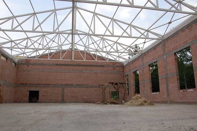 Prace przebiegają zgodnie z przyjętym harmonogramem. Obecnie mamy stan surowy otwarty z konstrukcją dachową z wiązarów kratowych bez pokrycia. Do końca roku wykonawca planuje zakończyć prace budowalne i rozpocząć wyposażanie obiektu, malowanie, itp. Budynek ma zostać oddany inwestorowi do końca lutego 2016 r.
