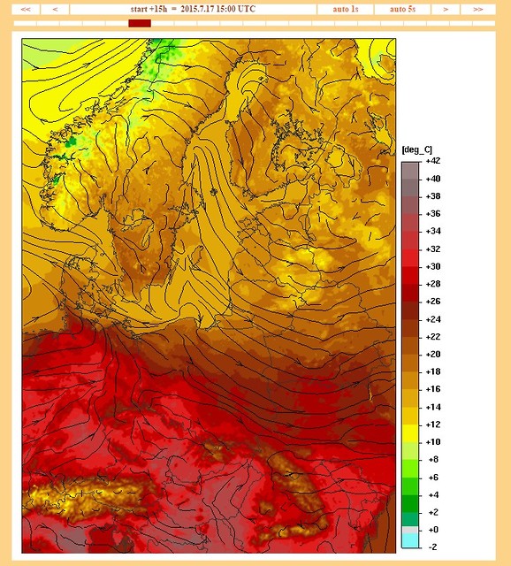 Przebieg: Prognozuje się temperaturę maksymalną w dzień od 30°C do 34°C. Temperatura minimalna w nocy od 17°C do 20°C.