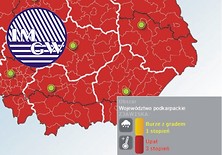 Przebieg: Prognozuje się wystąpienie burz z opadami deszczu od 20 mm do 30 mm oraz porywami wiatru do 70 km/h. Lokalnie opady gradu.