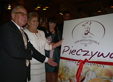 Wiele też gratulacji, prezentów i wyrazów szacunku spłynęło na ręce Pani Krystyny i Stefana Busiów. Pamiątką na kolejne lata zostanie prezent od dzieci i wnuków – nowe logo Piekarni Chle-Buś.