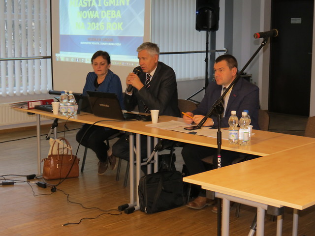 Komisja Budżetowa Rady Miejskiej w Nowej Dębie zorganizowała spotkanie, na które zaprosiła radnych 4 Rad: Rady Miejskiej w Nowej Dębie, Rady Powiatu Tarnobrzeskiego, Rady Seniorów Miasta i Gminy Nowa Dęba oraz Młodzieżowej Rady Miejskiej w Nowej Dębie. Temat spotkania – budżet gminy na 2016 rok - był tematem trudnym, ale bardzo ważnym dla mieszkańców. Skarbnik Gminy Alicja Furgał przedstawiła założenia do budżetu, jego strukturę, planowane dochody oraz wydatki. Kwoty z poszczególnych pozycji budżetu wskazał w swojej prezentacji Burmistrz Wiesław Ordon. Burmistrz podkreślił, że dochód własny, podatkowy Gminy, w wysokości przeszło 25,7 mln zł, jest dochodem na przyzwoitym poziomie. W dyskusji głos zabrali radni z Rady Miejskiej, Rady Powiatu oraz Rady Seniorów.
