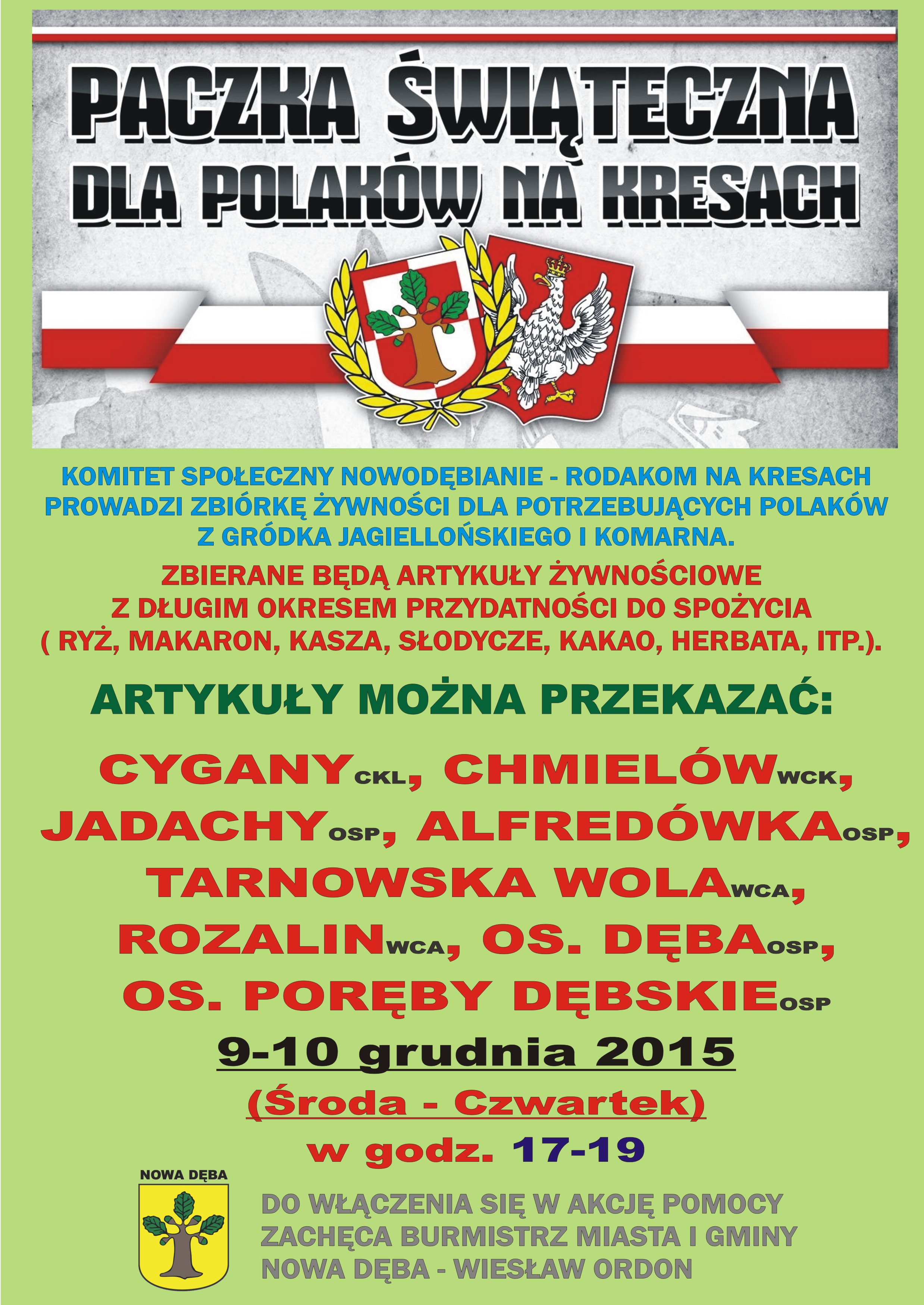 Akcję pomocy objął patronatem i wsparciem burmistrz miasta i gminy Nowa Dęba Wiesław Ordon.