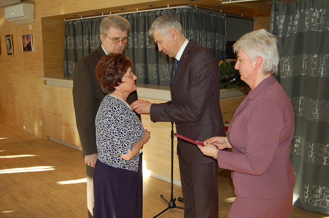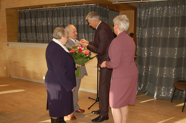 - Świętujecie dziś swój piękny jubileusz 50-ciu lat pożycia małżeńskiego. Wraz z Wami, w sposób symboliczny poprzez obecność władz samorządowych, jubileusz świętuje cala gmina. Święto swoje mają dziś małżeństwa, które są podstawą każdej społeczności lokalnej, które przyczyniają się do rozwoju każdej z takich społeczności. Pewnie rzadko ktoś z Was, Dostojni Jubilaci, tak ocenia swoje małżeństwo, swoje życie, bowiem zazwyczaj koncentrujecie się na swojej rodzinie, swoich najbliższych, ale my postrzegamy Was jako ostoję gminnej społeczności, fundament jej wzrastania. To Państwo budowaliście, poprzez swoje życie małżeńskie, swoje otoczenie, to dzięki Wam zaludniały się szkoły, to Wy stawaliście za biurkiem, maszyną, na roli, a przez to tworzyliście warunki dla rozwoju Nowej Dęby i naszych wsi. Jesteście pokoleniem, któremu przyszło podejmować ten trud w czasach niełatwych, ale pozostawiliście trwały ślad w miejscu, w którym przyszło Wam żyć. Dzięki temu kolejne pokolenia mogły łatwiej pomnażać, rozwijać te podwaliny, które tworzyliście. 50 lat małżeństwa to czas wielu radości, zadowolenia ze wspólnej drogi, ale pewnie i niełatwych chwil, może i łez. Dziś możecie być dumni z tego, że przez te lata udało się kroczyć obok siebie, pokonywać przeciwności. Dziś możecie być świadectwem dla innych, zwłaszcza w czasie, kiedy próbuje się deprecjonować wartość małżeństwa. Dziękujemy Wam za wspólną Waszą drogę, za każdą chwilę, którą w tym czasie poświęciliście swoim najbliższym, swojemu otoczeniu. Niech kolejne dni wspólnie razem upływają Wam z poczuciem, że otacza Was miłość najbliższych, szacunek władz, sympatia znajomych – powiedział Burmistrz Wiesław Ordon.