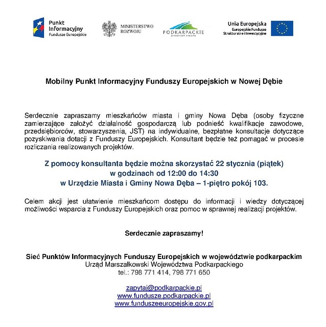 Mobilny Punkt Informacyjny Funduszy Europejskich w Nowej Dębie