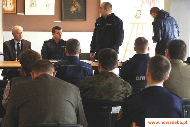 W spotkaniu udział wzięli: Burmistrz Miasta i Gminy Nowa Dęba Wiesław Ordon, Komendant Straży Miejskiej w Nowej Dębie Mieczysław Nalepa, Komendant Placówki Żandarmerii Wojskowej st. chor. szt. Adam Ładosz, Kierownik Miejsko – Gminnego Ośrodka Pomocy Społecznej w Nowej Dębie Leszek Mirowski, Dyrektor Samorządowego Ośrodka Kultury w Nowej Dębie Krystian Rzemień oraz przedstawiciele sołectw. Spotkanie otworzył Komendant Miejski Policji w Tarnobrzegu inspektor Edward Ząbek. Komendant w swoim wystąpieniu przedstawił idee tworzenia "Krajowej mapy zagrożeń bezpieczeństwa w Polsce”, oraz propozycje poprawy skuteczności działań w zakresie likwidacji zagrożeń poprzez zwiększenie współpracy i aktywizacji ze wszystkimi podmiotami zaangażowanymi w realizację zadań na rzecz poprawy bezpieczeństwa obywateli. Następnie Naczelnik Wydziału Prewencji Komendy Miejskiej Policji w Tarnobrzegu nadkom. Stanisław Sekuła przedstawił prezentację multimedialną dot. tworzenia mapy zagrożeń. Sprawozdanie stanu bezpieczeństwa na terenie gminy Nowa Dęba przedstawił kom. Marek Pietrykowski Komendant Komisariatu Policji w Nowej Dębie.